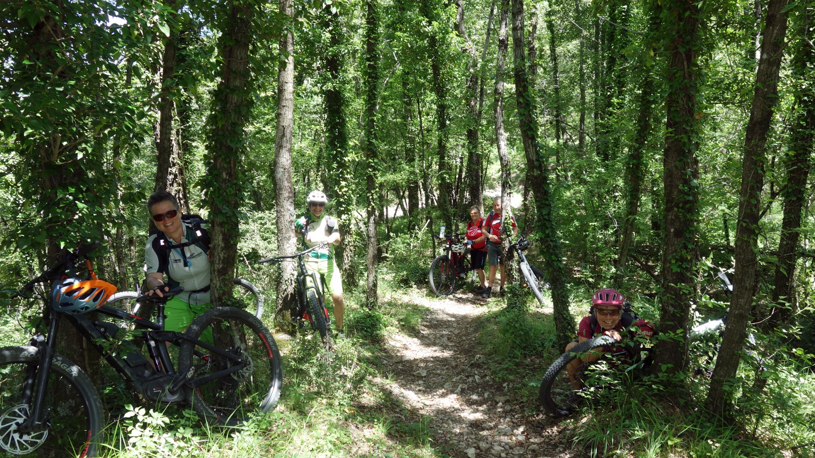Und übrigens, wir sind auch Fahrrad gefahren ;-). Wir hatten eine VIP-Gruppe. Wir waren vier Teilnehmerinnen (3 Frauen, 1 Mann) und hatten zwei kompetente Guides. Housi fuhr vorab und Erika machte den Schluss. Ausser wenn Erika mit zwei von uns eine Schloufe fuhr, so dass der letzte Teil der Tour auf einem Trail zurückgelegt werden konnte, da fuhr Erika voran und wir zwei hintennach. Und die Buchhaltung lautete am Schluss so: 300km, 5200Hm legten wir auf den 5 Touren zurück. Wir hatten unendlich viel Spass und Freude. Die Glücksgefühle nahmen fast kein Ende.