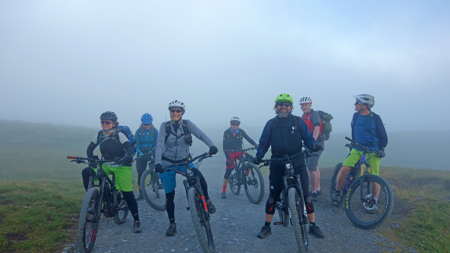 Die Nebelschwaden verhüllten zwar die Berge vielfach, umso mehr beeindruckten die imposanten "4000-er" wenn sie unerwartet und mit voller Wucht zu Gesicht kamen. Auch der Kälteeinbruch auf Samstag vermochte die gute Stimmung in der Gruppe nicht zu stören. Die Teilnehmer/Innen genossen das grandiose Panorama und die coolen Single Trails in der Jungfrau Region und waren mehr als nur glücklich wider erwarten alle 3 Tage unterwegs zu sein, ohne einmal nass zu werden.