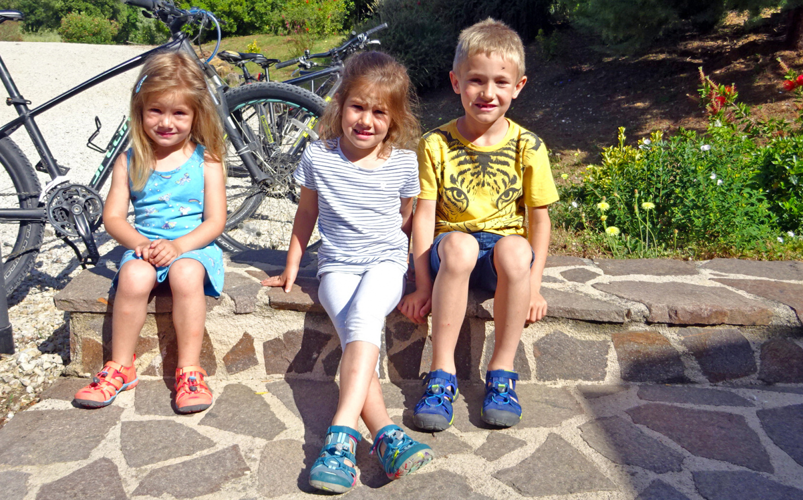 Unser Tag sah dann in etwa so aus: wir sind alle zusammen um ca. 8.30 Uhr zum Frühstück gegangen. Um 9.30 Uhr haben sich alle Teilnehmer gleich neben dem Frühstücksrestaurant für die Tour besammelt. Nachdem die Sportlichen losgefahren sind, bin ich mit den Kindern zurück zum Haus geschlendert, mitten durch die fein duftenden Olivenhaine und blühende Blumenpracht. Ich habe diesen kurzen Spaziergang gemocht.