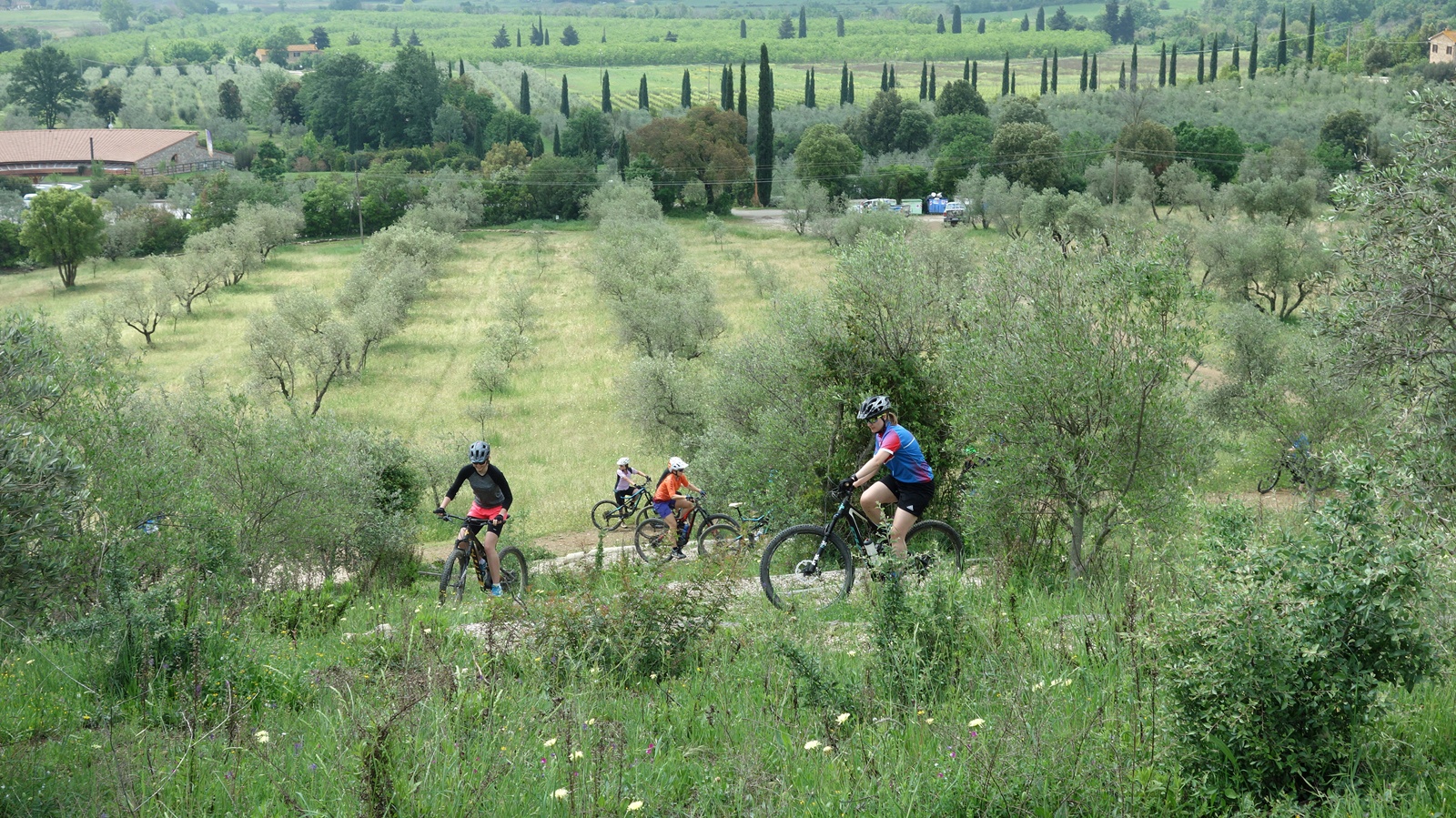 Auch meine eigene Fahrerin verhält sich manchmal seltsam. Sie bleibt immer im Sattel sitzen. Egal ob ein Hindernis kommt oder es bergab geht, sie erhebt sich einfach nicht vom Sattel. Erst seit sie hinter der Fahrerin von Scott herfahren kann, erhebt sie sich ab und zu. Meistens vergisst sie es aber. Zum Glück erinnert sie der grüne Scott-Fahrer hinter ihr daran, dass sie sich bewegen kann und nicht ständig stillsitzen soll.